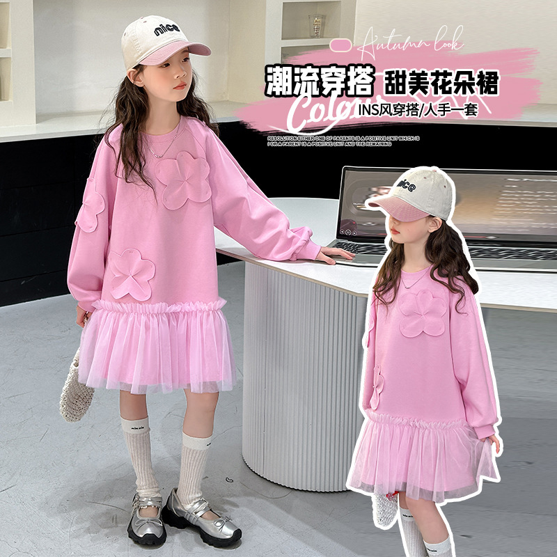 女の子のワンピース2025春の新型韓国版洋気衛衣のスカートの大きい子供の流行の洋気のカジュアルな花のスカート