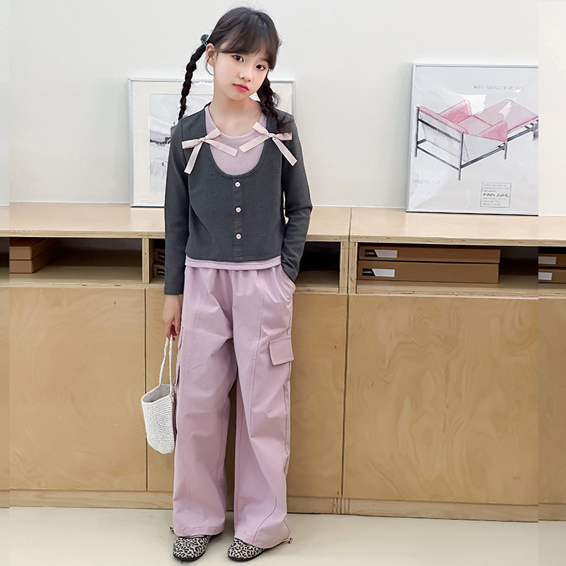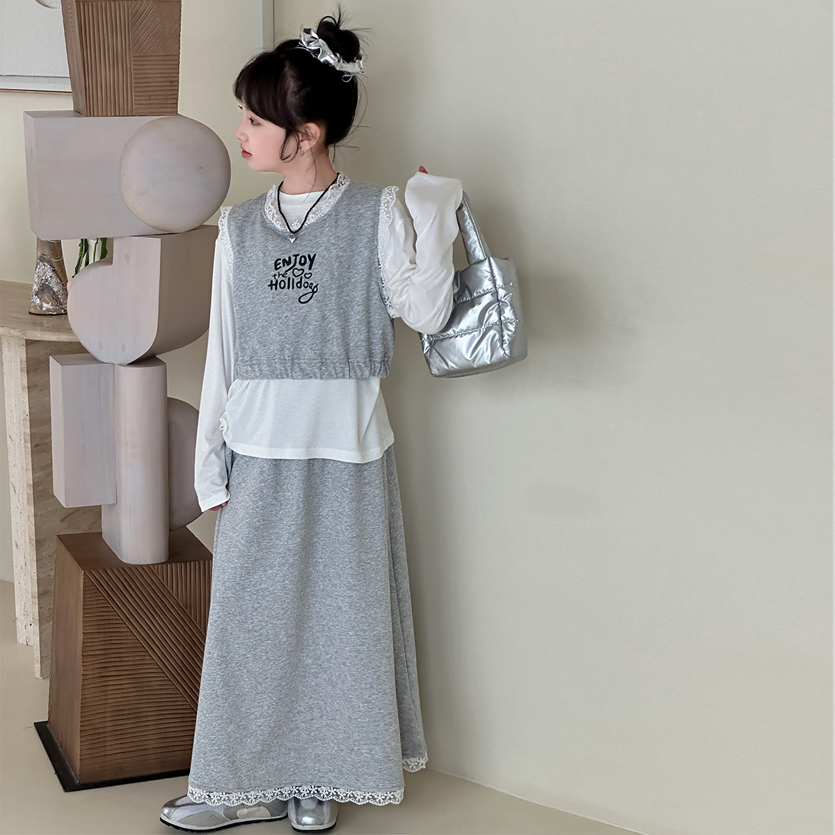 女の子カジュアルスカートセット2025春新作大童韓国版洋気馬甲レーススカート3点セット