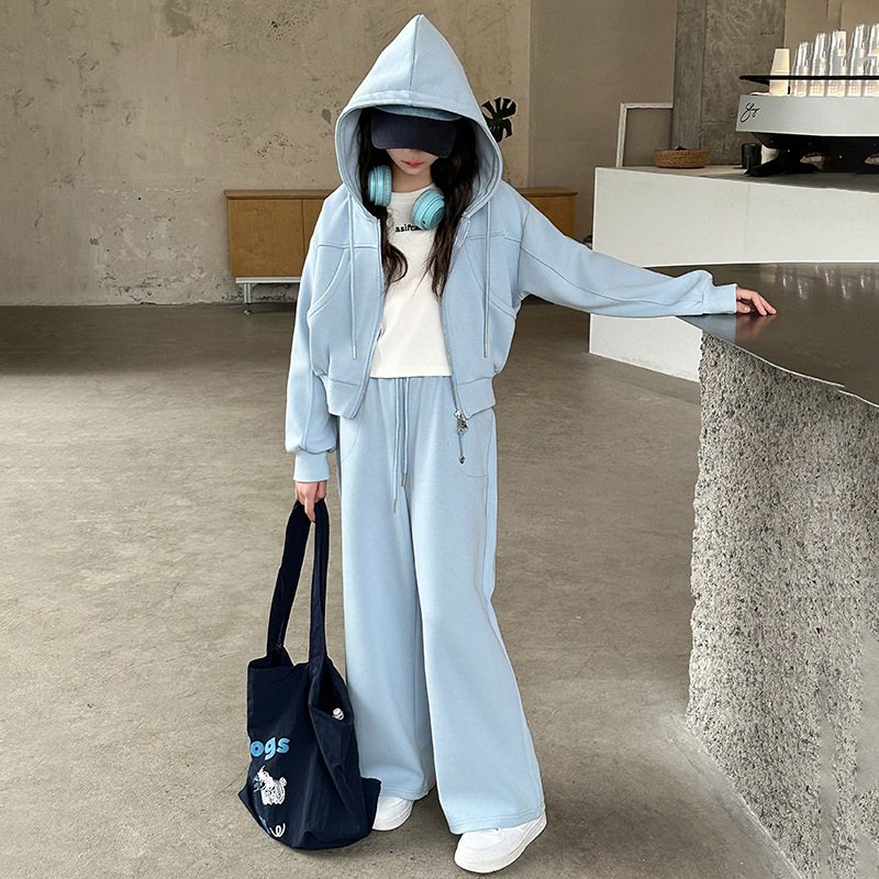 女の子フード付きカジュアルスーツ2025春の新しい子供のゆるいカジュアルスポーツ服2着の子供服