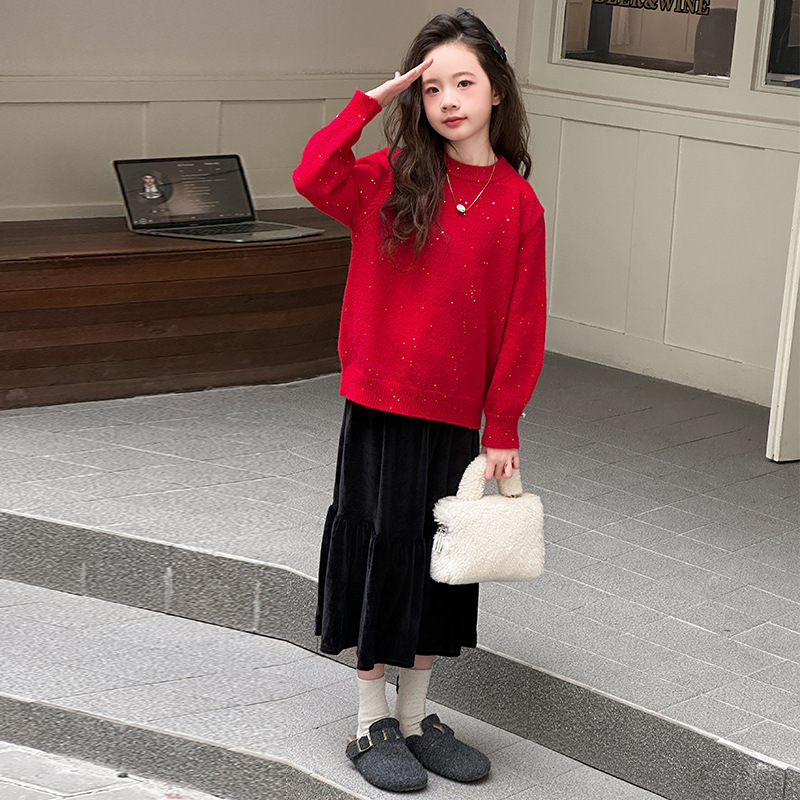 女児は本命年のセーターを厚くして、新年の洋風の流行のスパンコールニットのセーターの上着は新年の服を祝います。