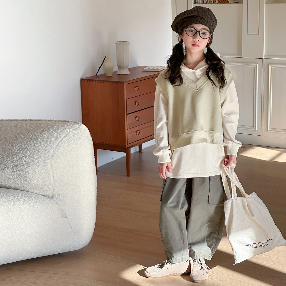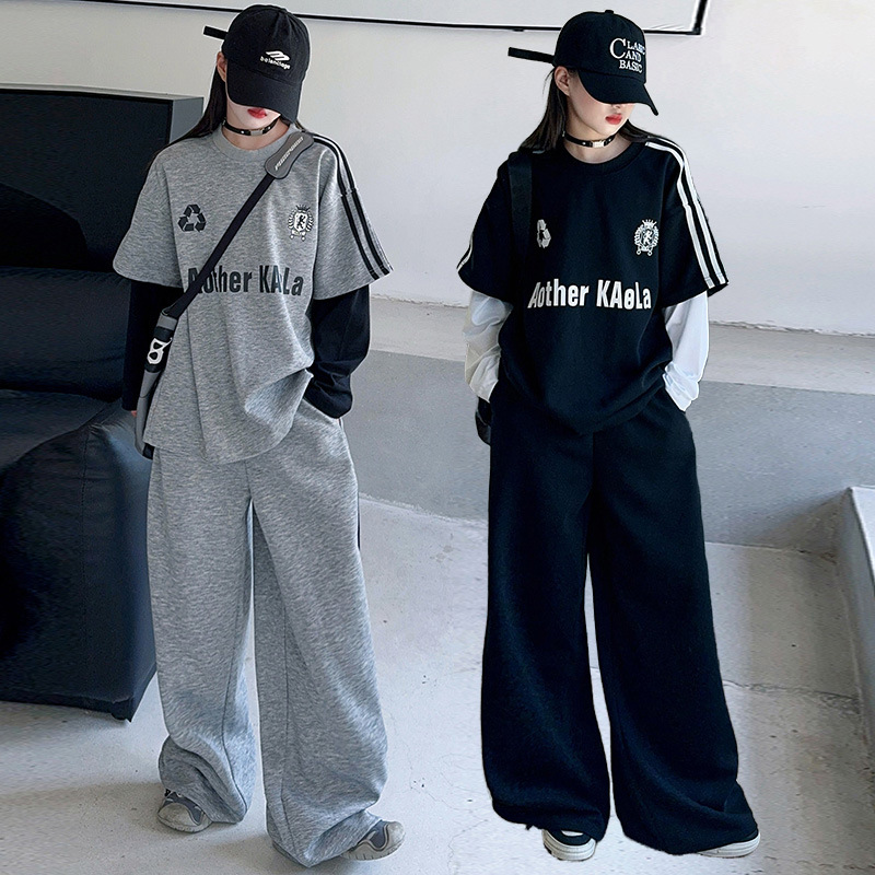 女の子の偽の2つのセット2025春秋の新型の大きい子供の韓国版のネットの赤い揚げ物の街のゆるい潮のクールな2つのセットの運動