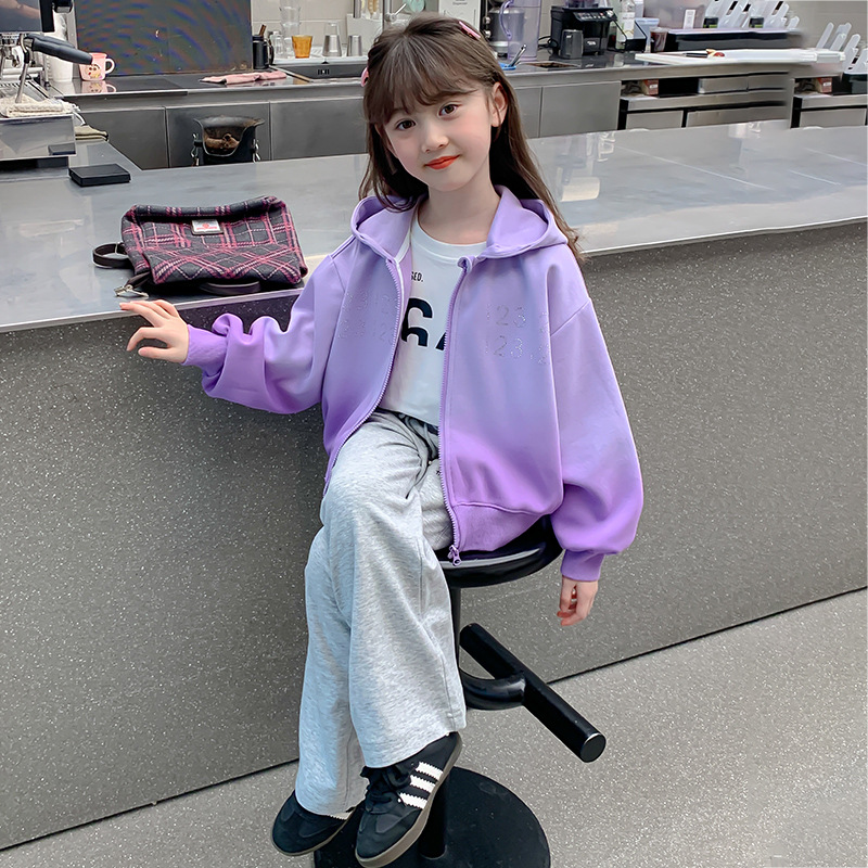 女の子のカジュアルコート2025春の新型の子供のファッションの洋風の百合のスポーツのパーカーのカーディガンの子供のファスナーのシャツ