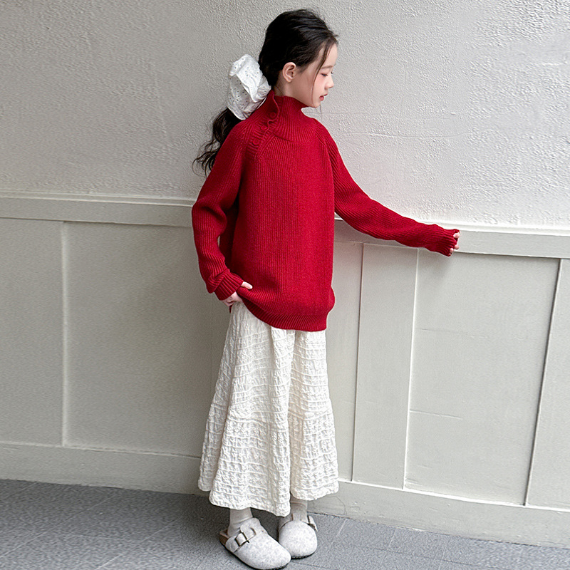 女の子の洋風の赤いセーターは2025年の代金の本命年に毛糸の服を編みます。