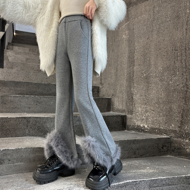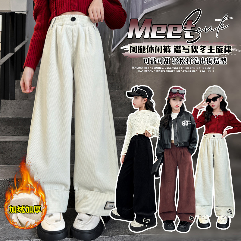 女の子のベルベットのズボン2024冬の新しい子供のファッションは、広い足のズボンを厚くして保温しているズボンの広い足のズボンです
