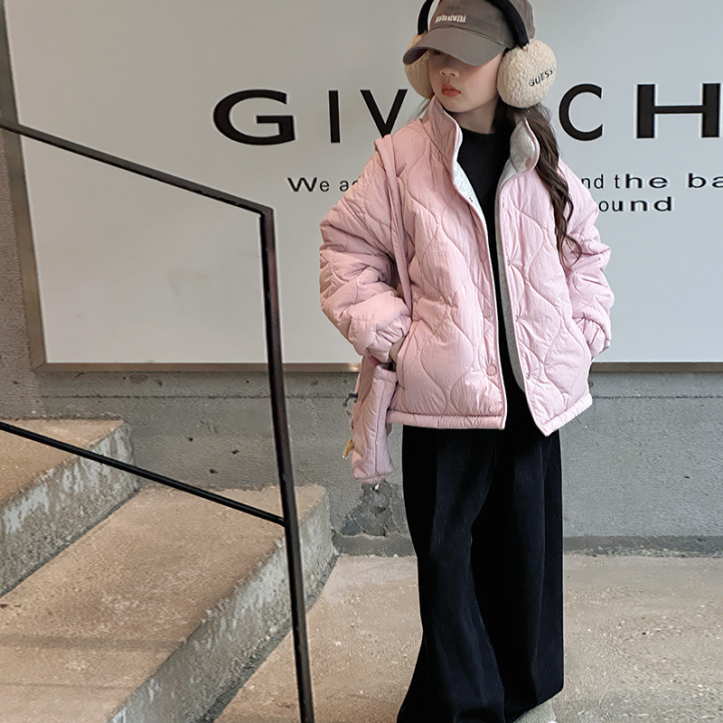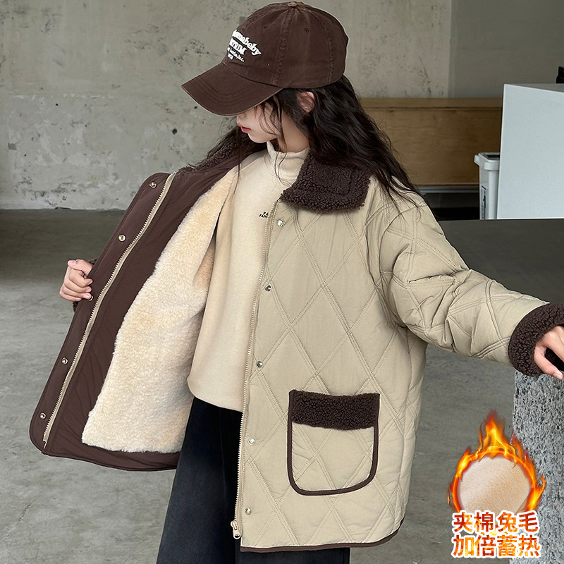 女の子とベルベットの綿服2024冬の新しい子供のファッション的な雰囲気が厚くて暖かいシャツの綿服のコート韓国版