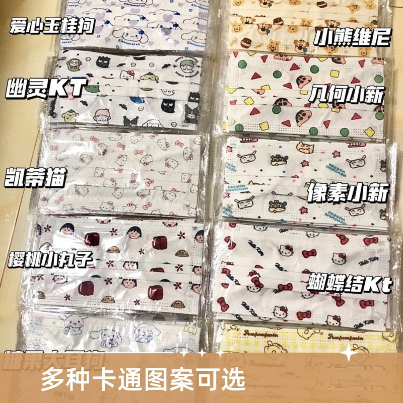 ネット赤高颜値マスク独立包装サンリオ使い捨てアニメかわいい少女心マスク夏薄いタイプ