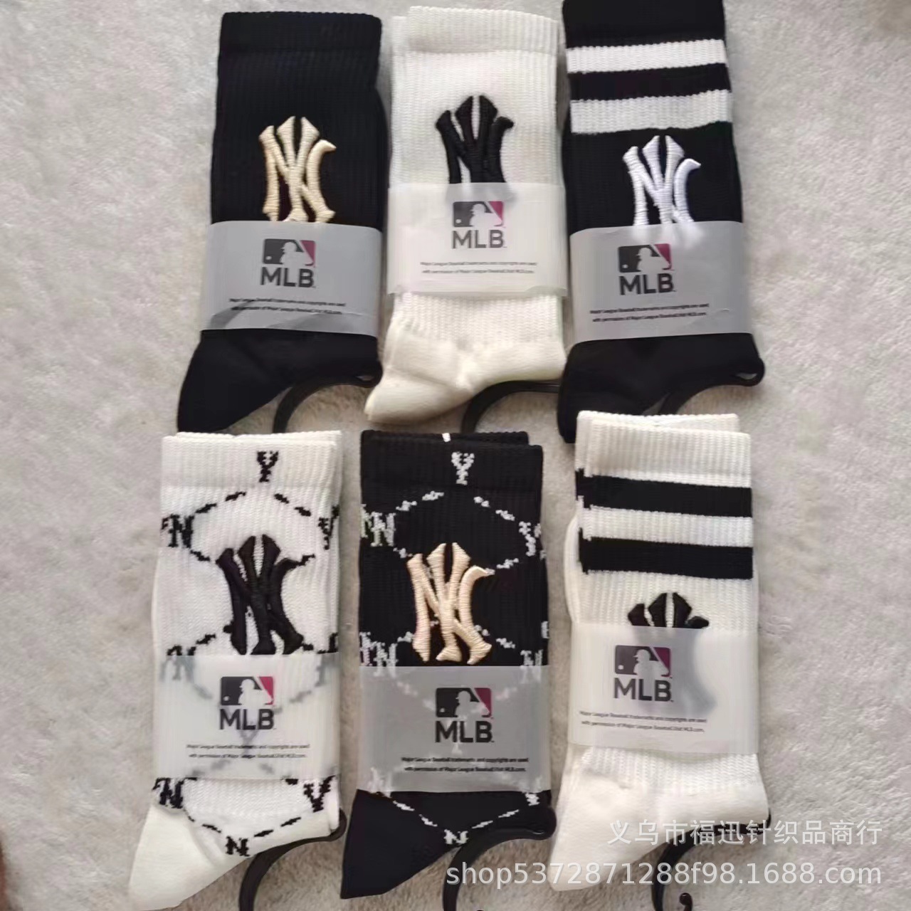 MLB靴下男女カップルのファッションファッション靴下筒運動レジャー通気刺繍レリーフNY韓版綿