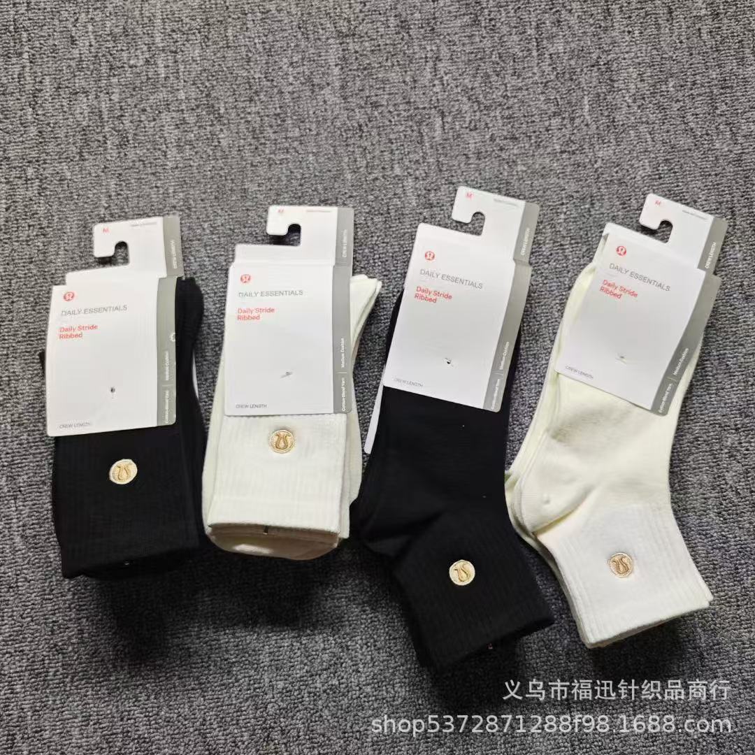 新商品の露露lulu刺繍マークの四季型の筒の純色の男女の靴下の3足は運動のレジャーの靴下の外に入ります。