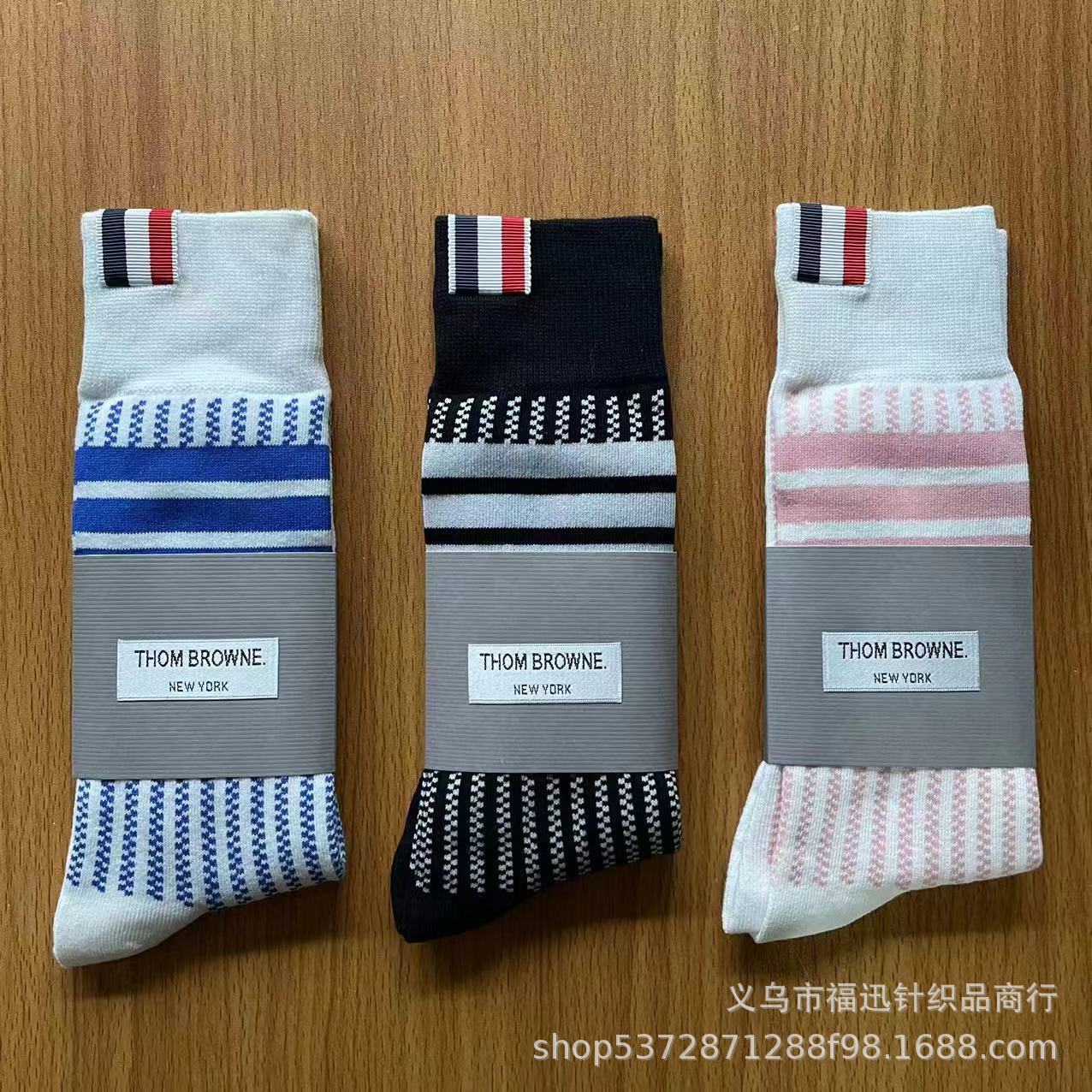 新品ハートA刺繍靴下ダブルニードル中短筒黒白グレーシンプルダブルニードルスポーツカジュアルコットンソックスinsファッションソックス