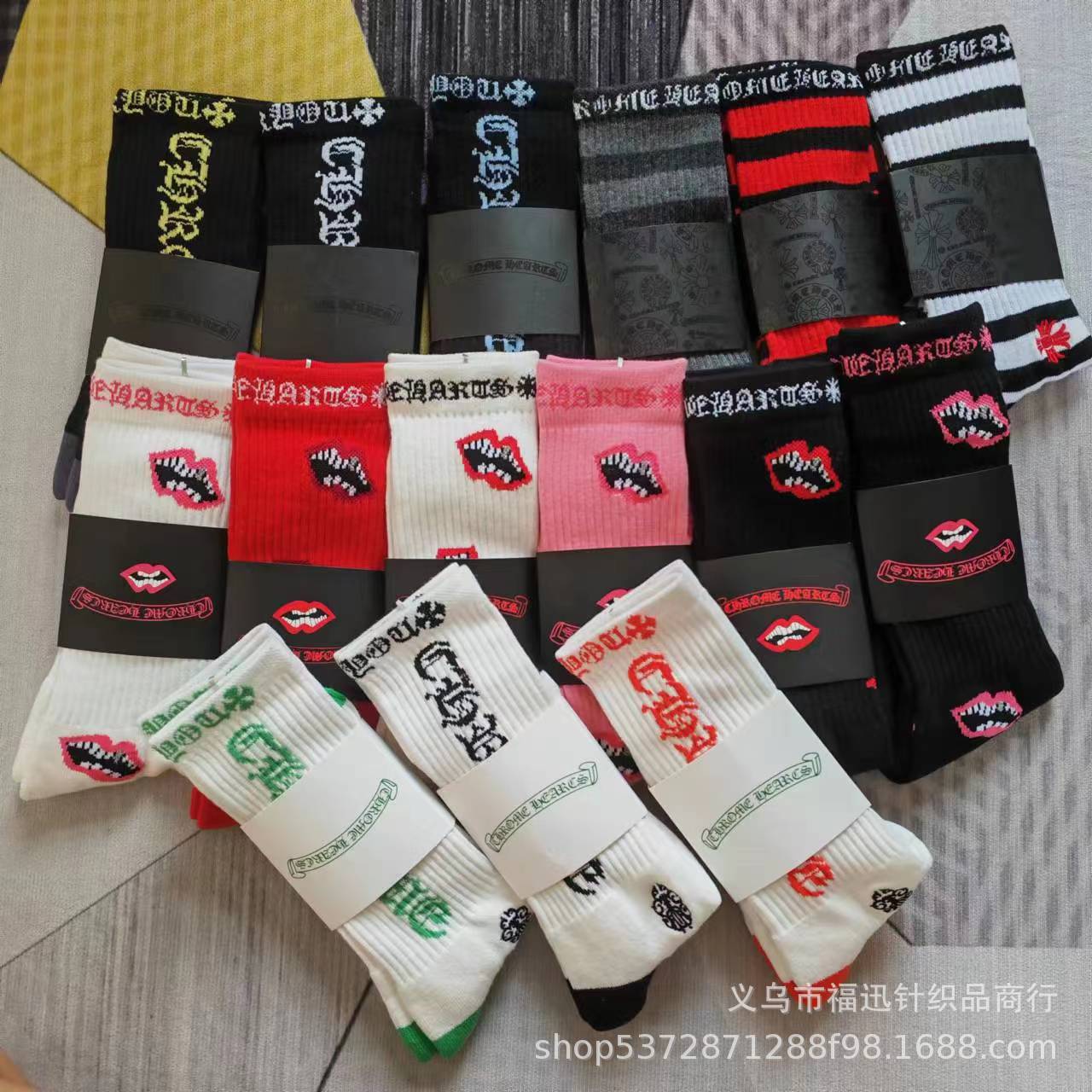 秋冬の新型外国貿易クロ愛靴下chストライプのアルファベットの赤い唇の刺繍のマークのタオルの底の運動のファッションの靴下
