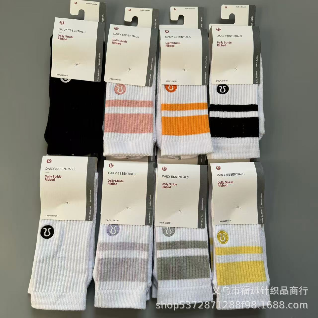 新商品LULUルルーヨガソックス男女中筒同タイプのランニングトレーニングフィットネス運動速乾潮靴下対外貿易