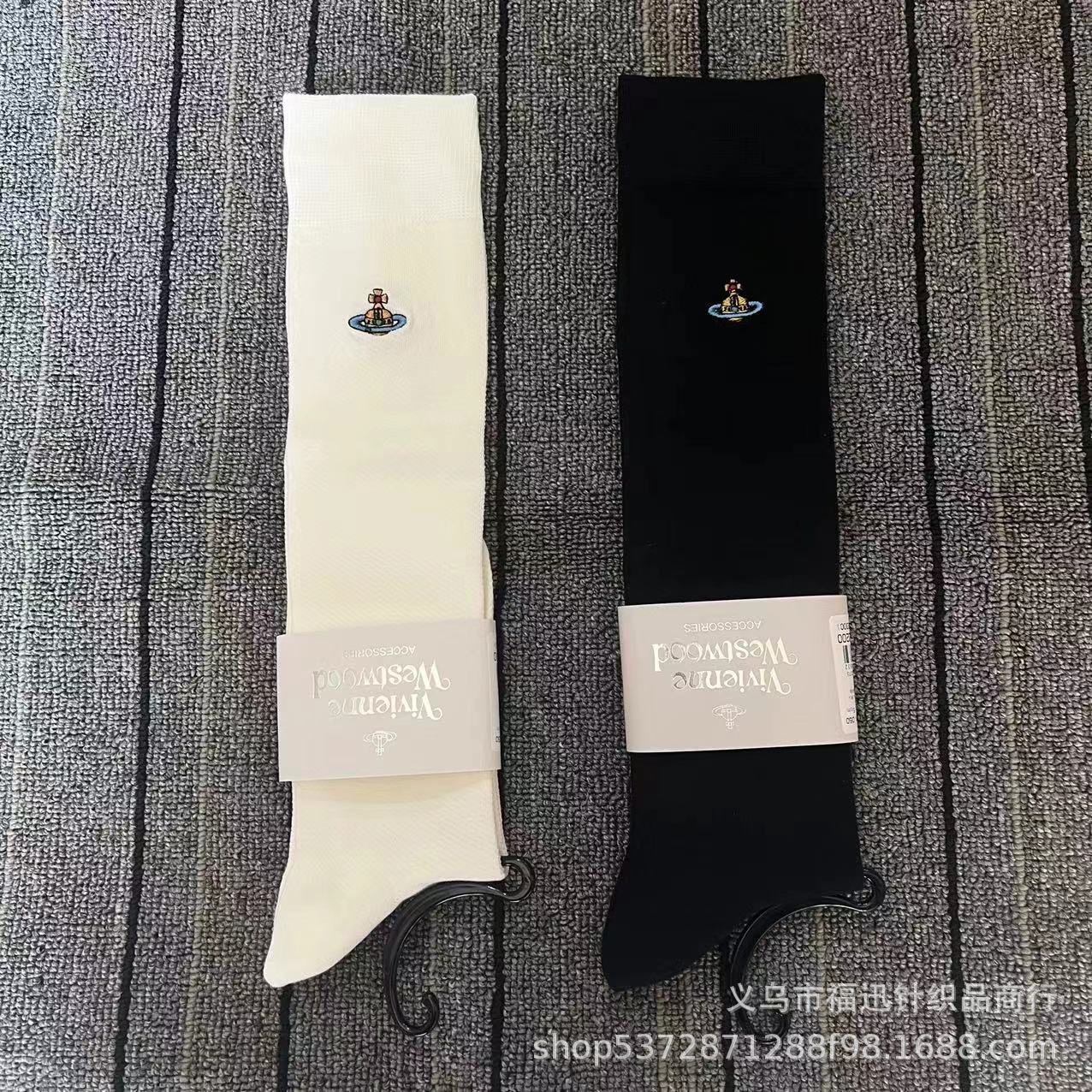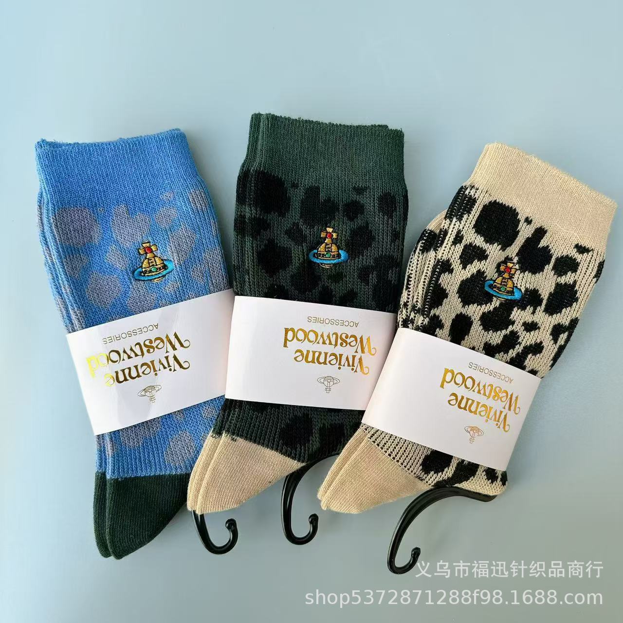 新型西太后土星刺繍豹柄ファッション女性靴下トレンド女性スタッキングソックス二重針二重路中筒靴下