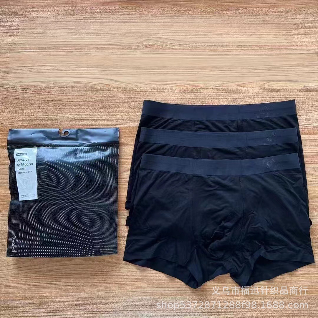 露露LULU男性平角下着快適無痕通気モーデール純色四角下着三黒セット新
