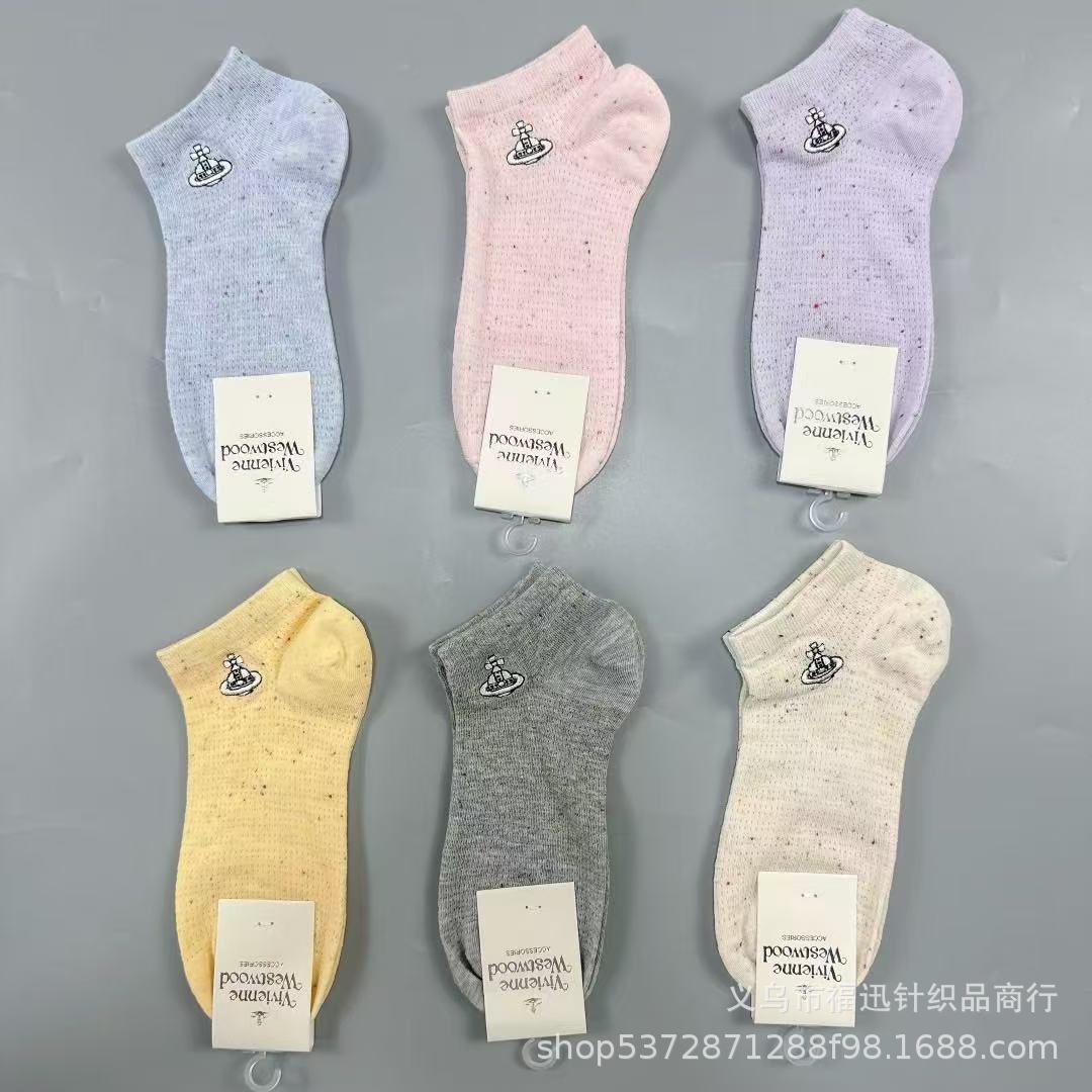 外国貿易女王マザーサターンロゴショートチューブレディースソックス刺繍ロゴボーンレスマカロンファッションドット糸カラートレンディソックス卸売