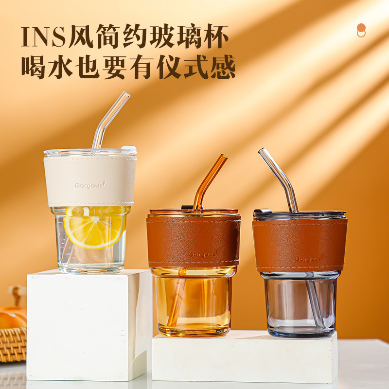 定制网红竹节杯加厚玻璃吸管水杯咖啡杯开业小礼品广告杯印字批发