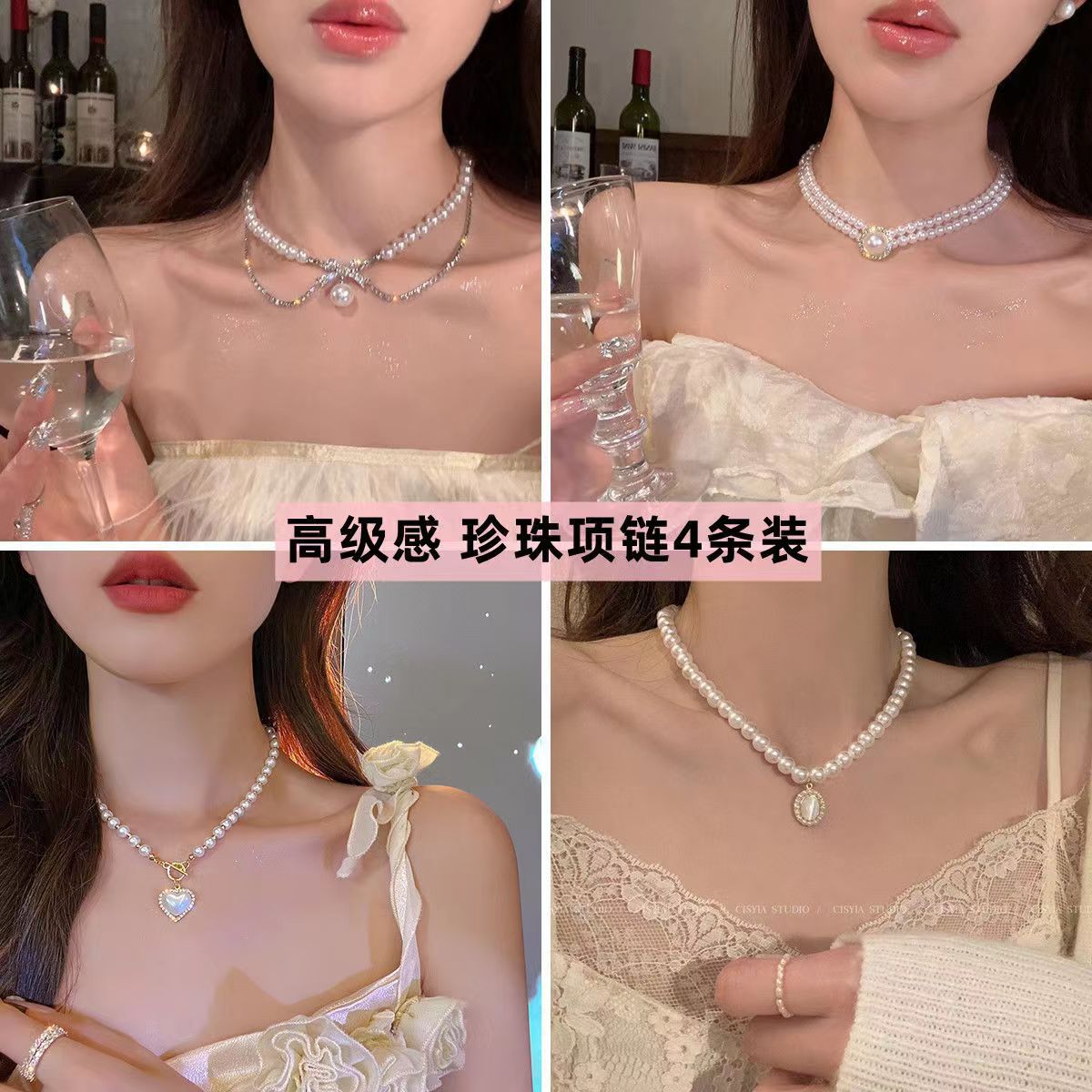 高質感のネックレスの女性は軽くて豪華で、精巧なフランスのレトロな真珠の首のチェーンの気質のchoker貴気の鎖の骨のチェーン