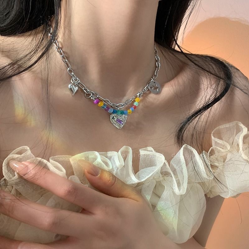 甘いクール ~ 手作りカラービーズ愛ネックレス女ins潮軽贅沢小衆デザイン高級感鎖骨鎖首鎖