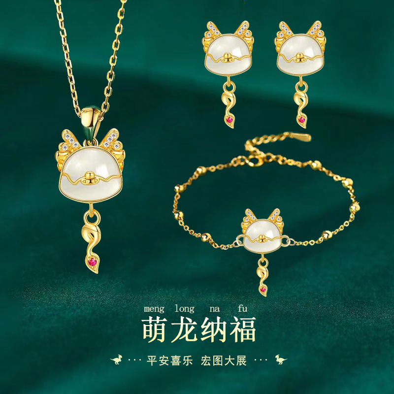 新中国式国潮風紅縄萌龍ブレスレットネックレスイヤリング合集生肖龍手飾り潮祥龍納福首