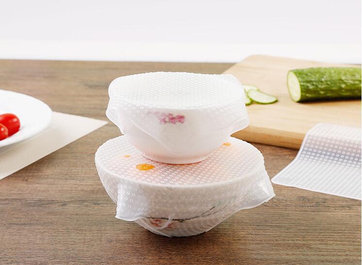 野菜の果物の鮮度保持フィルムの4つのセットの食品のシリカゲルの食品の鮮度保持フィルムの密封の碗の蓋は汚染の現物を隔離します。