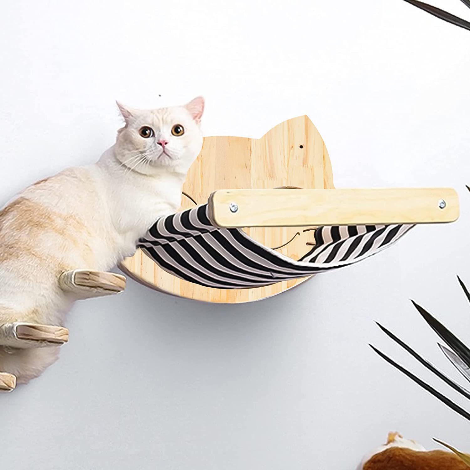 猫のハンモック猫の壁の吊り下げ式の猫の柱の階段の部屋の字の木製の猫のおもちゃの猫はキャンバスの巣を登ります。