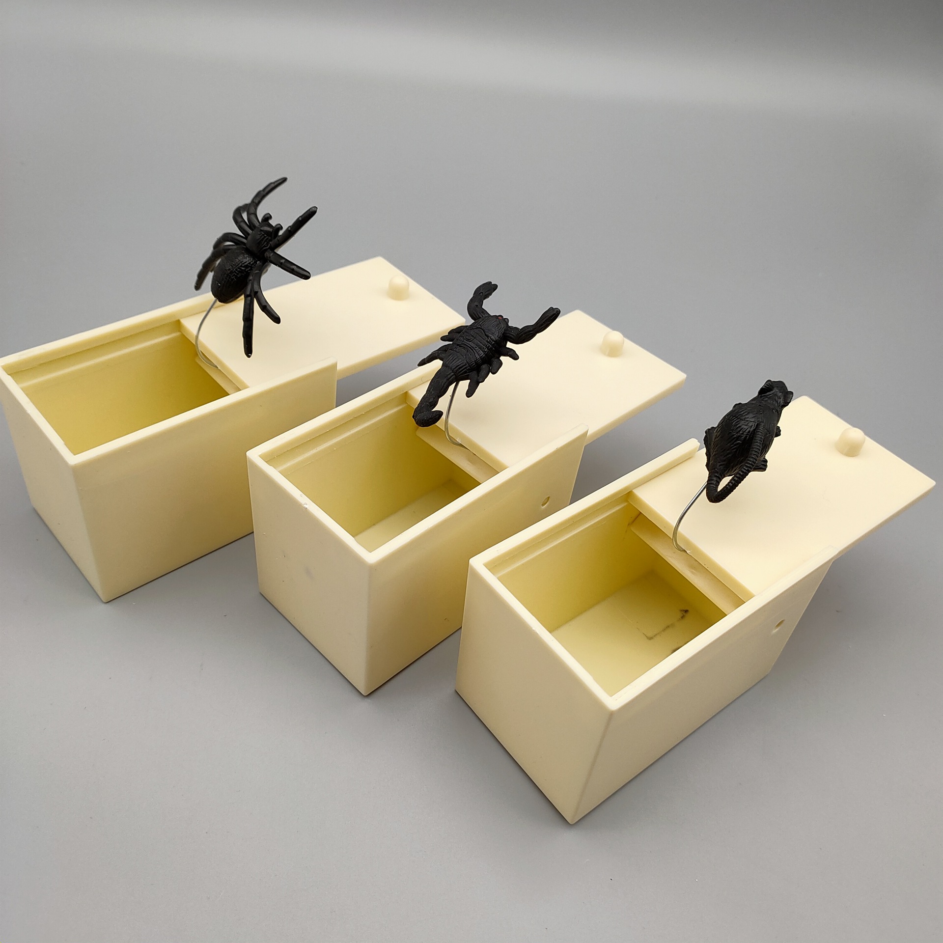 ハロウィーンのおもちゃはびっくりしてクモの色の箱の恐怖の虫をシミュレーションします。