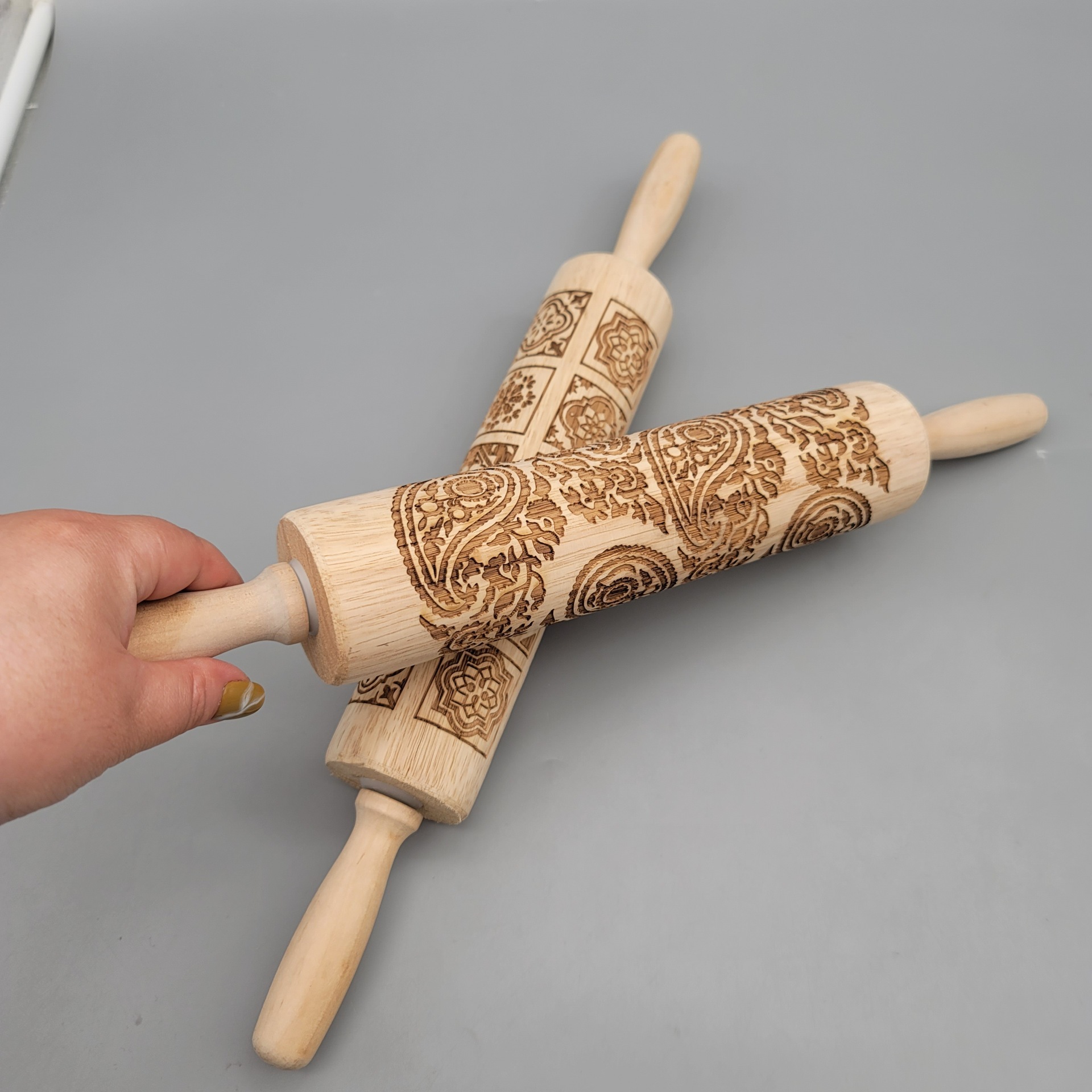 木製彫刻ストレート棒キッチンめん棒クッキー小麦粉棒クリスマスプリントめん棒卸売り