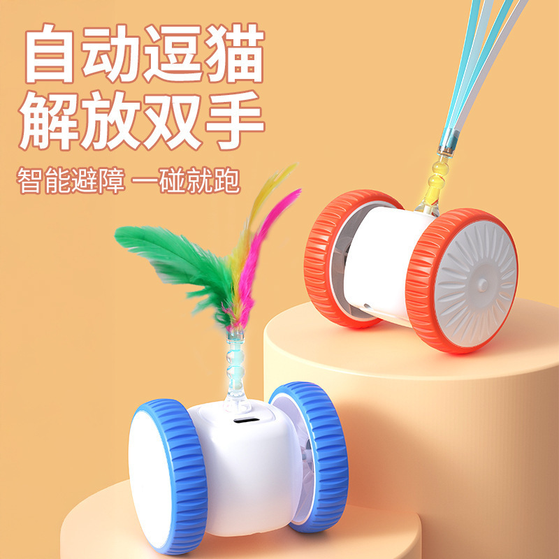 電動のおもちゃは自動的に猫のおもちゃのバランスの車をからかって猫の棒の羽を笑わせます。
