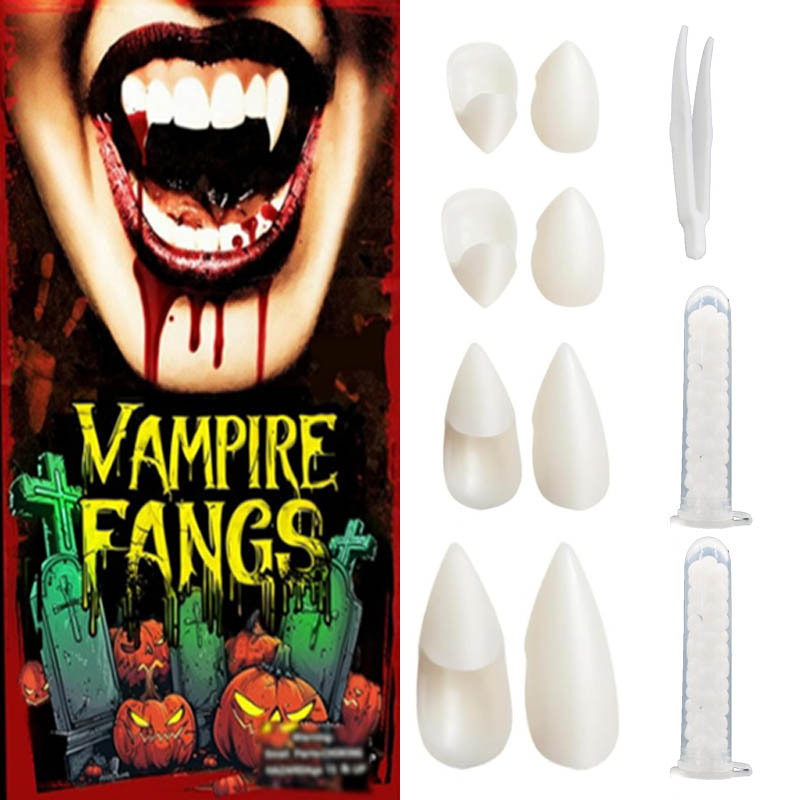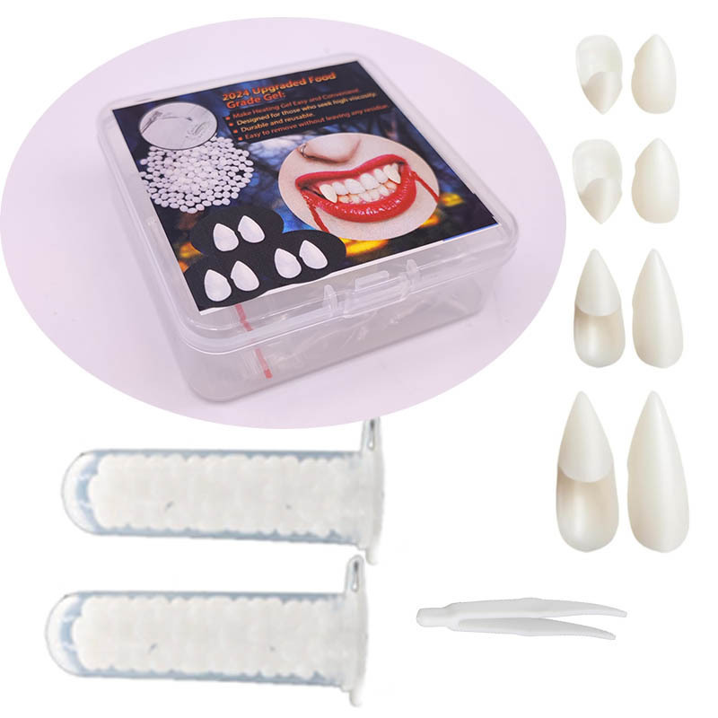 Kl qhz cホットメルト歯ゴム粒子moledable fale teethハロウィーン吸血鬼入れ歯牙
