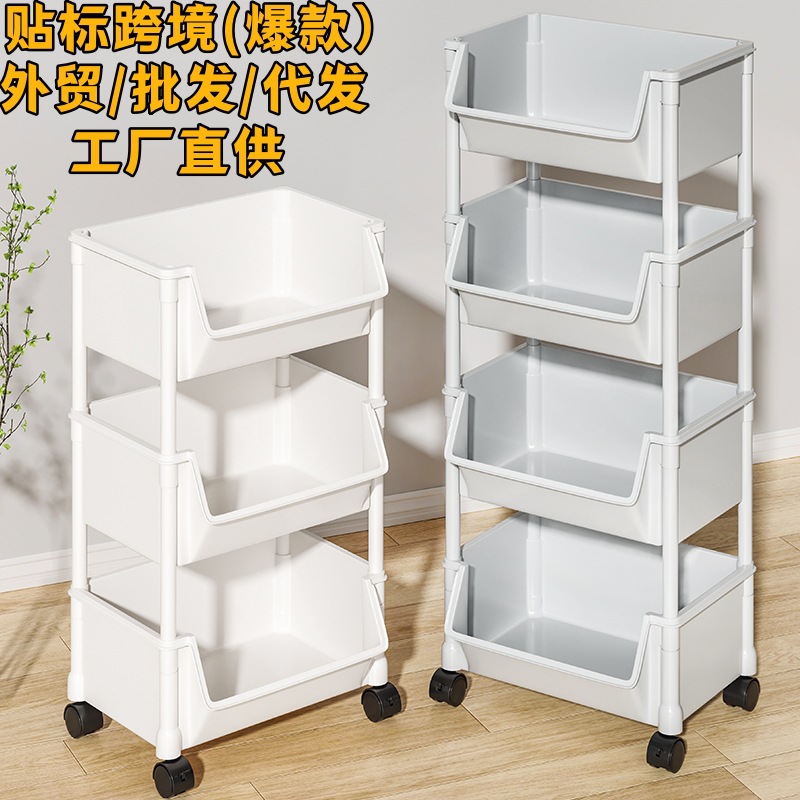 本棚が床に落ちている簡易家庭用子供用車輪付き多層ロッカー