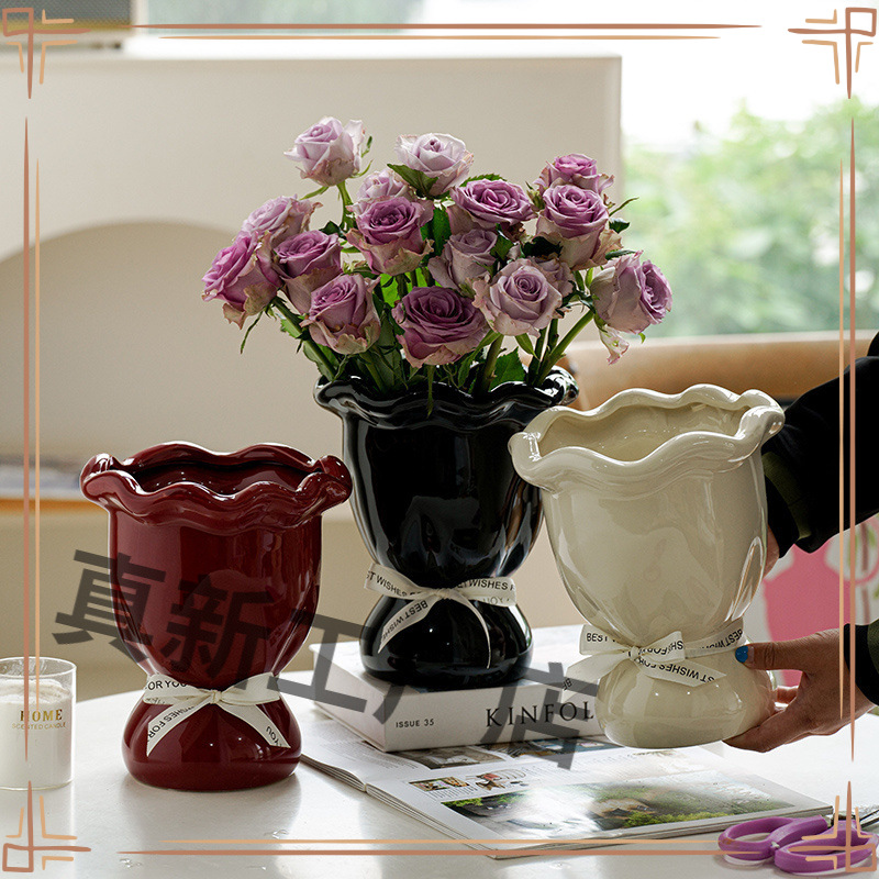 【1.4万人コレクション】フレンチクリーム風高級感軽豪華陶磁器花瓶個性生け花レトロ水培
