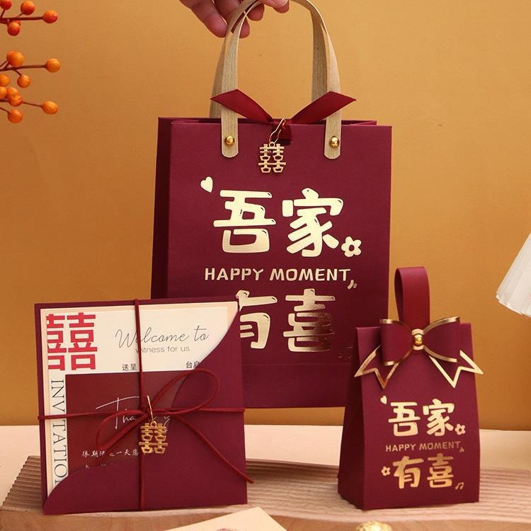 メーカー感のある結婚式の喜糖箱の三点セットの2024セットは、結婚式の手提げ袋の招待状を持っています。