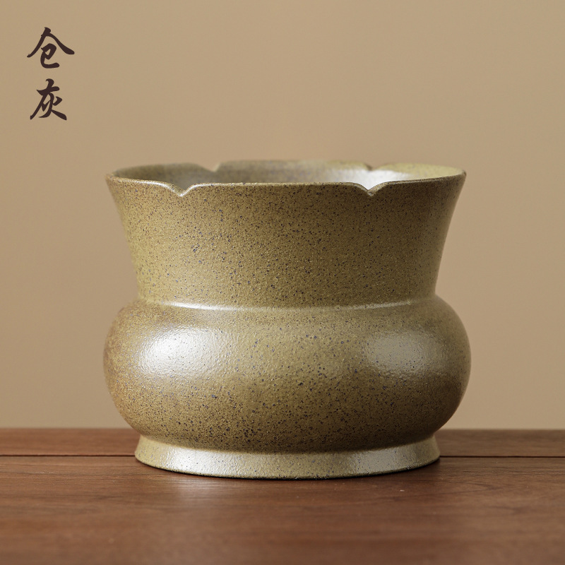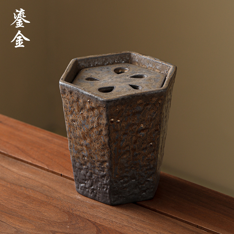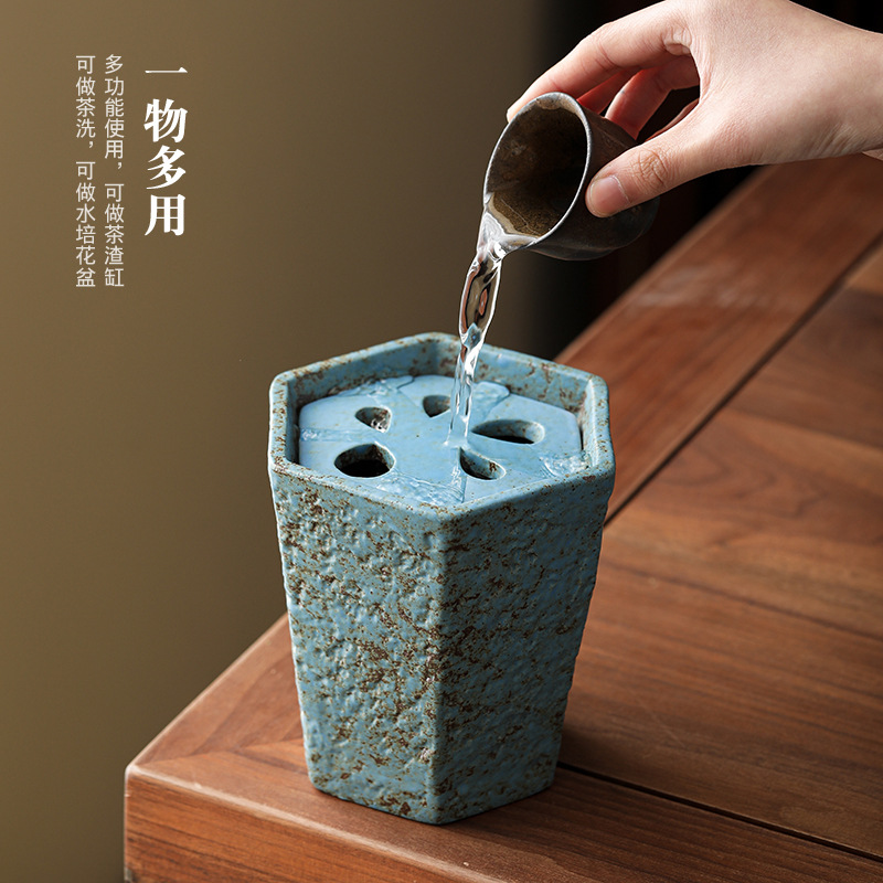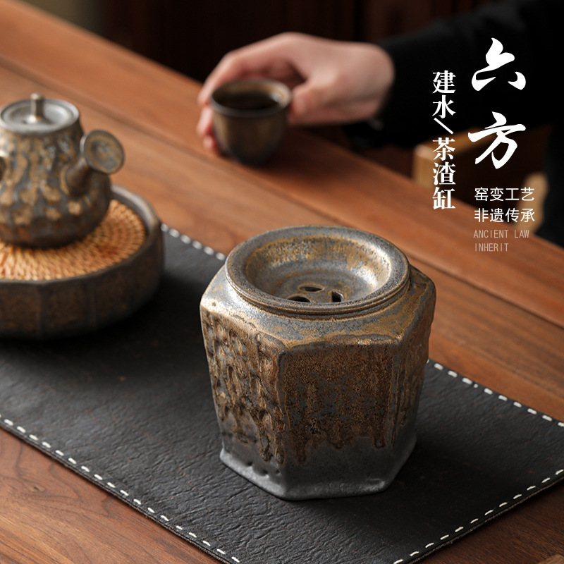 窯変粗陶六角形建水家庭用禅茶残りタンク蓋付き茶洗いレトロ大型水差し茶差し