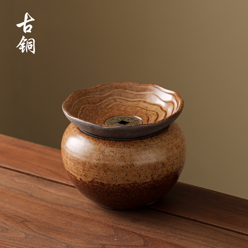 粗陶建水茶洗い陶器茶粕タンク蓋付き水差し小型卓上廃水タンクソーサーポットマットわびさびスタイル