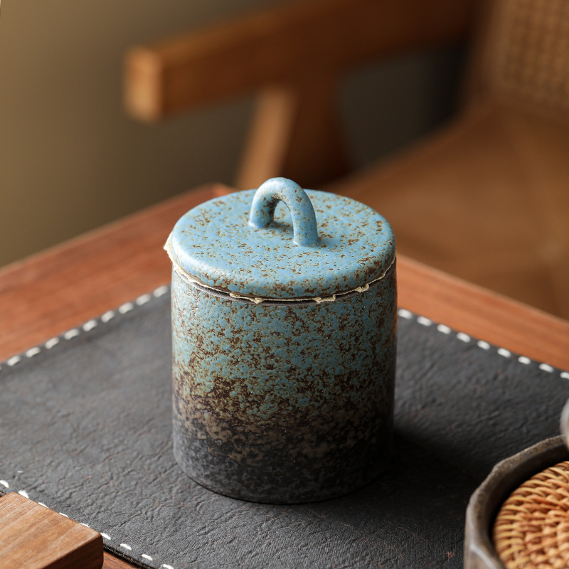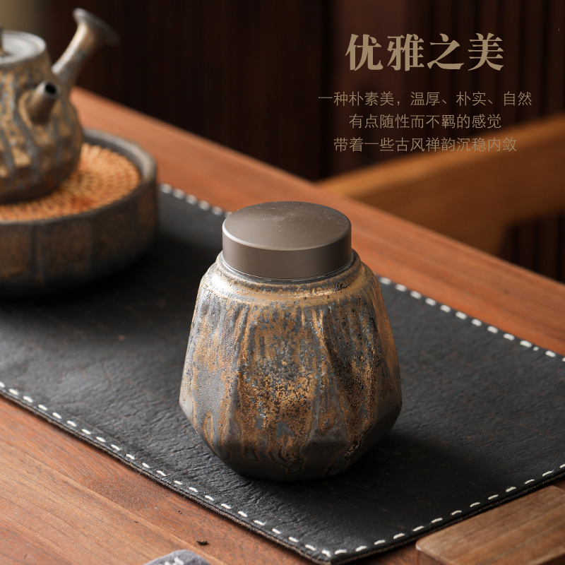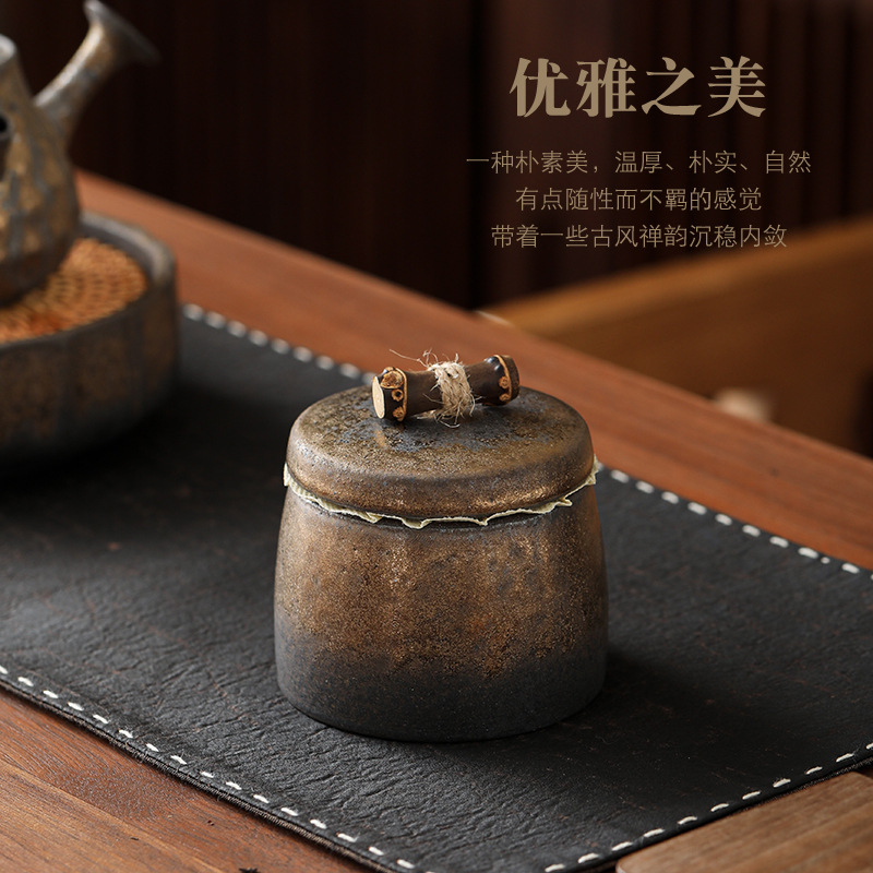 ポータブルミニ密封茶缶セラミック小型茶保存缶粗い陶器防湿茶倉庫カンフー茶セット装飾品