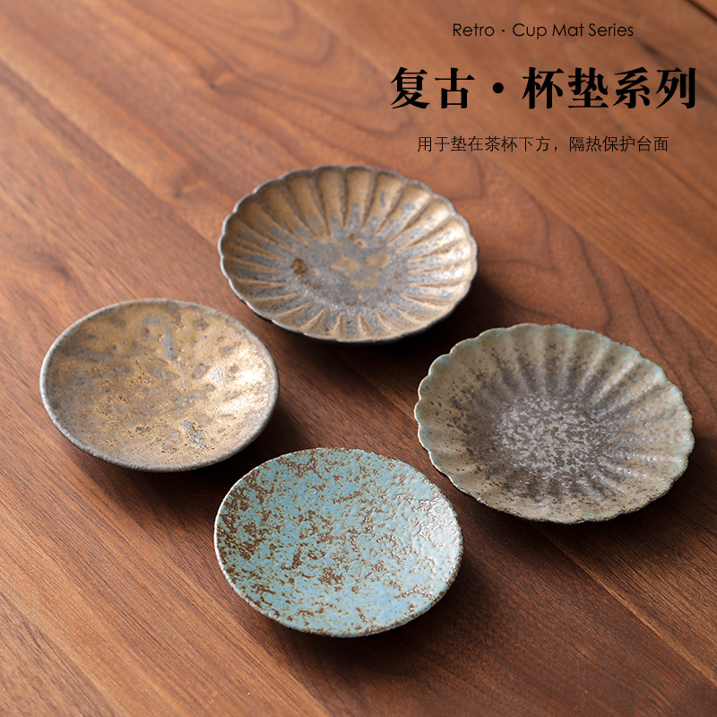 中国粗陶器コースター金メッキレトロティーマット家庭用カンフーティーセット茶道スペア断熱パッドコースターコースター