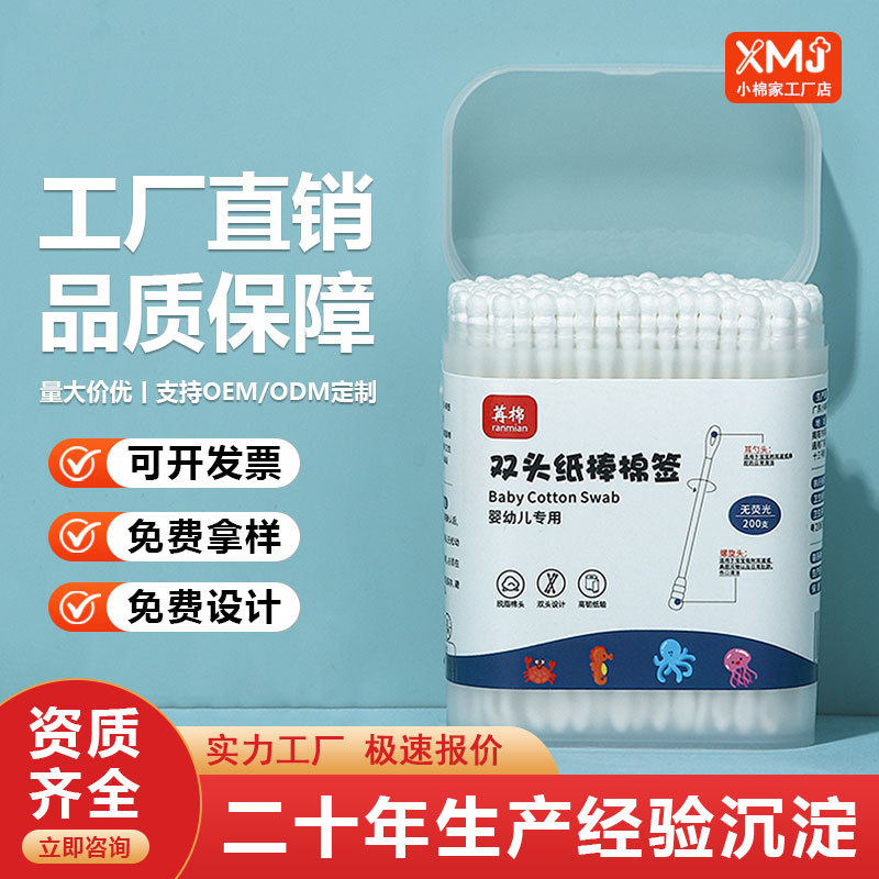 1688子供の紙の棒の細い棒の綿棒の200本の箱の中の脱脂綿の棒の子供の綿棒の使い捨ての子供の紙の棒の綿棒