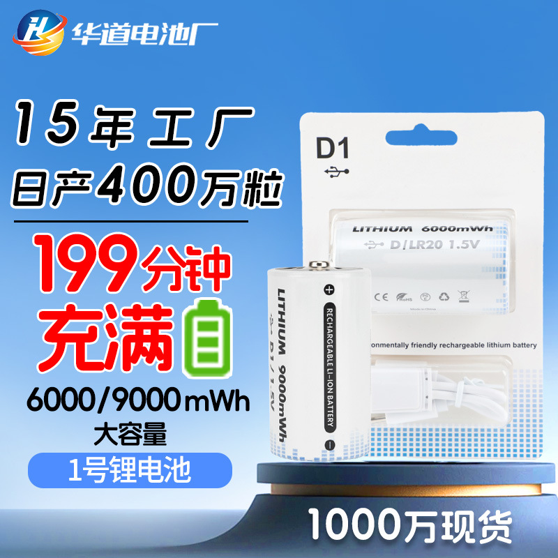 卸売り1.5v定電圧type-c 1号d型充電電池ガスコンロ懐中電灯1号充電リチウム電池