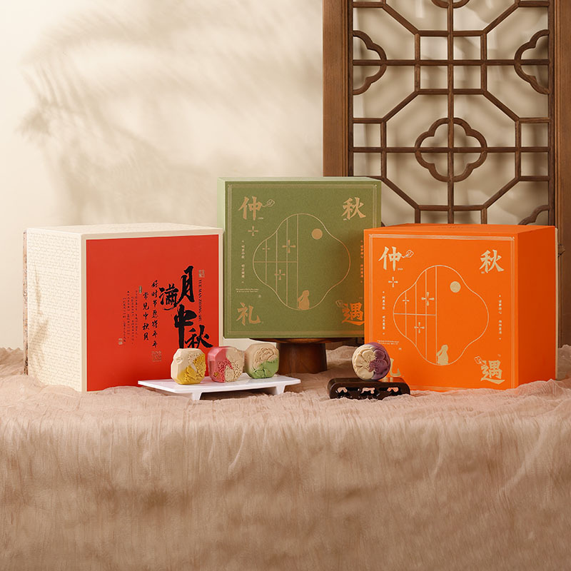 新しい中秋月餅包装箱、創造的な両開き月餅ギフトボックス、見栄えの良い流心クリスピーアイススキン月餅ギフトボックス
