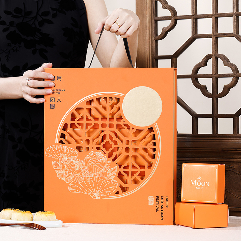新しい中秋節ポータブルギフトボックスホテルハイエンド 8 個 10 個包装空箱フローハート月餅広東風月餅ギフトボックス
