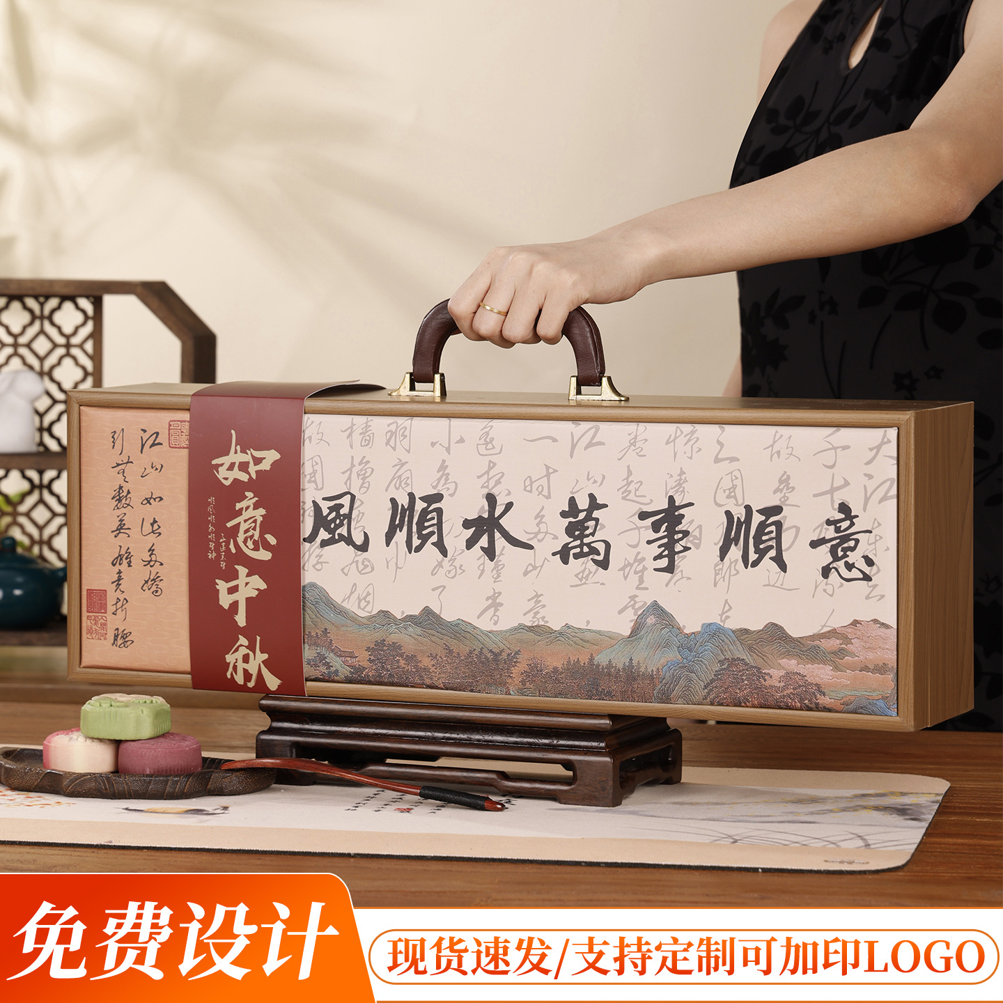 新しいすべてがうまくいくポータブル木箱中秋節ギフト包装箱卵黄クリスプ広東風中国月餅ギフトボックス空箱