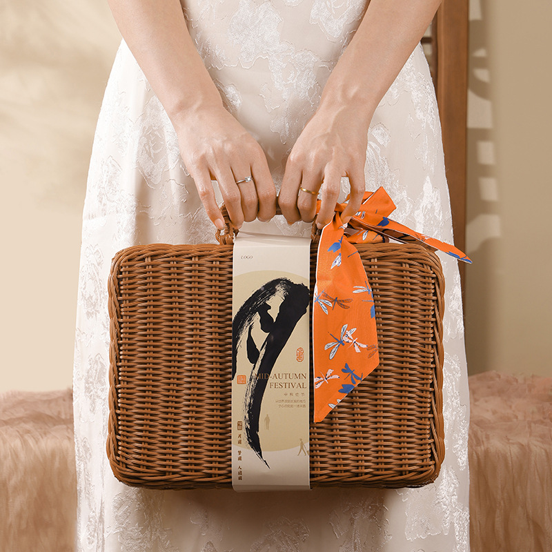 2025 中秋節雪肌月餅箱籐バスケット中秋節レトロギフトボックス卵黄餅月餅ポータブル包装箱