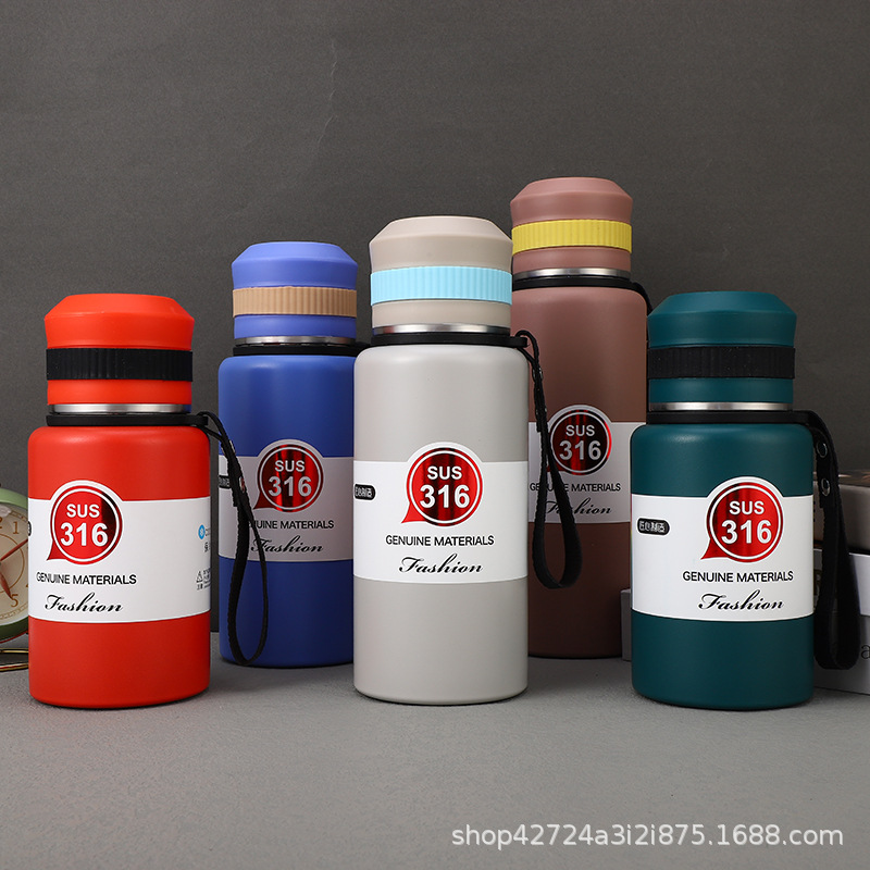 新型携帯316ステンレス保温カップ屋外スポーツベルトロープスポーツカップ茶水分離吊りカップ