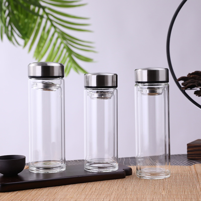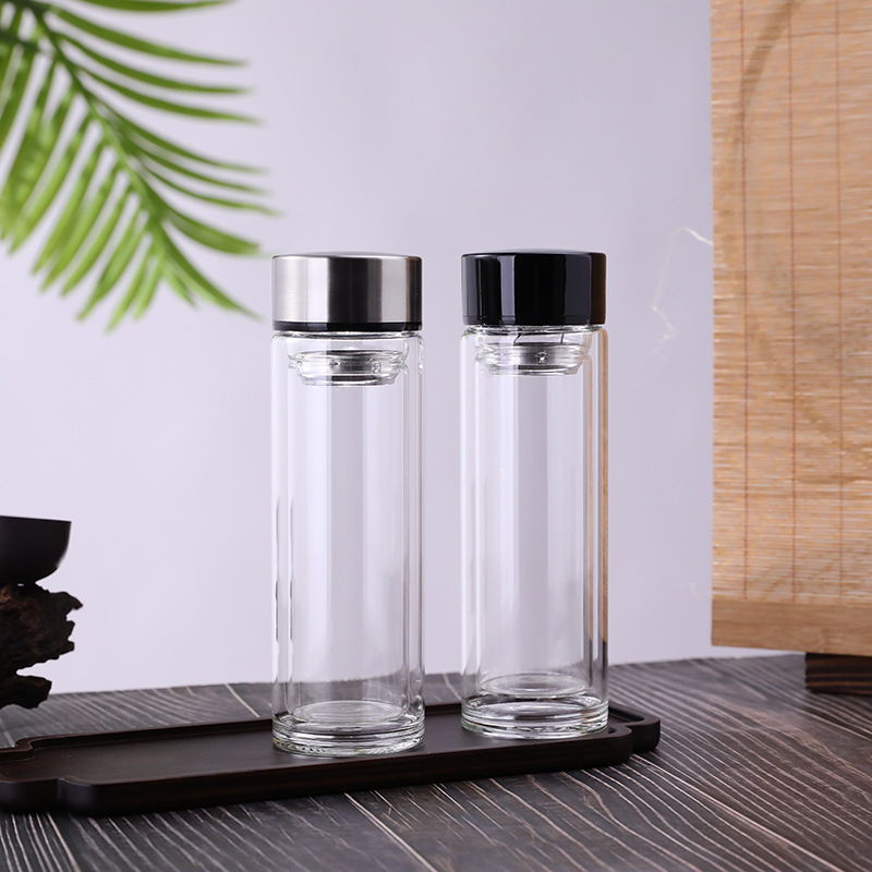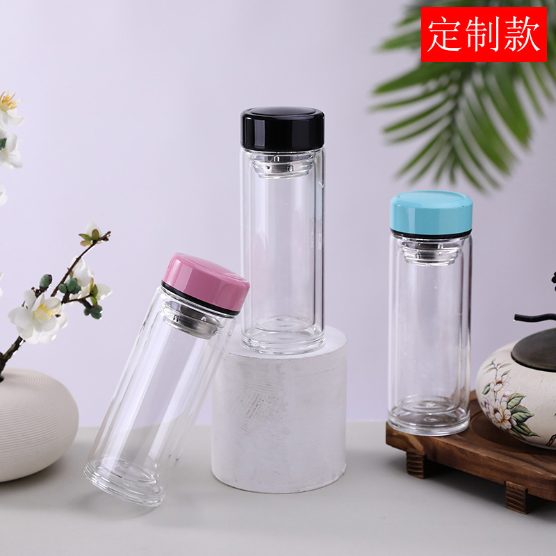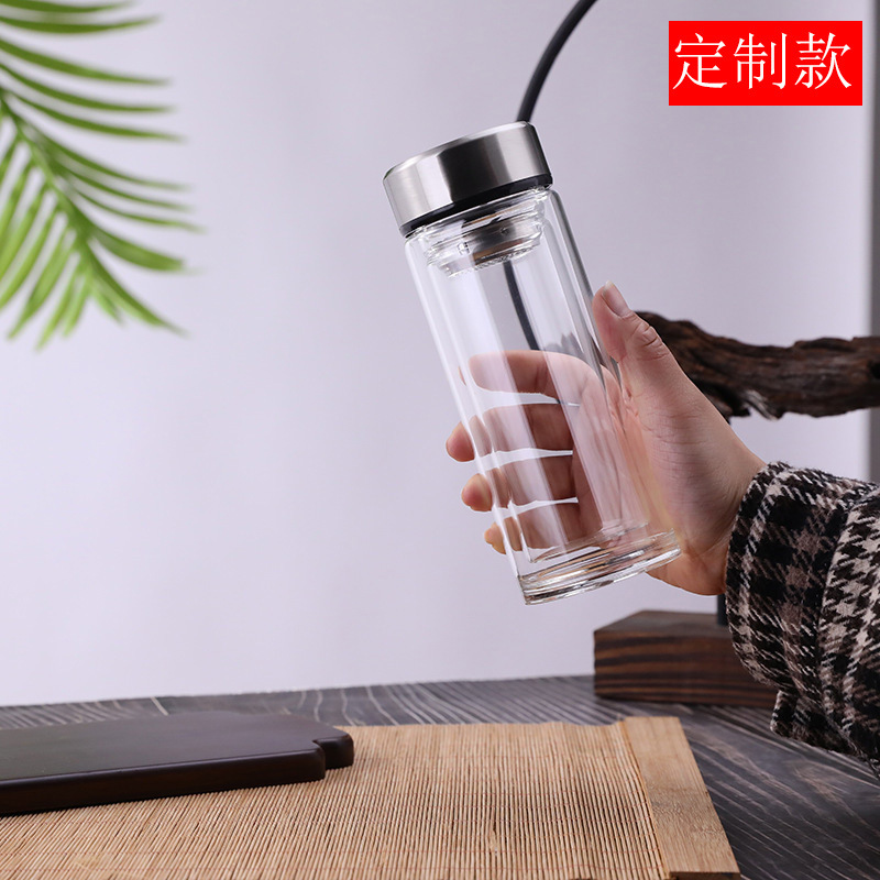 二層厚い透明ガラスカップ断熱茶水分離ろ過カップ男性携帯高級ビジネスカップ