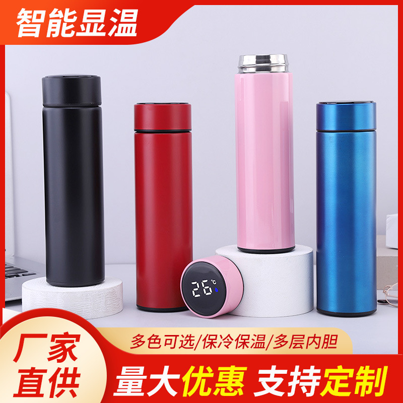 ゴム塗料304ステンレス知能測温保温カップ車載すぐビジネスストレートカップ携帯温度カップ