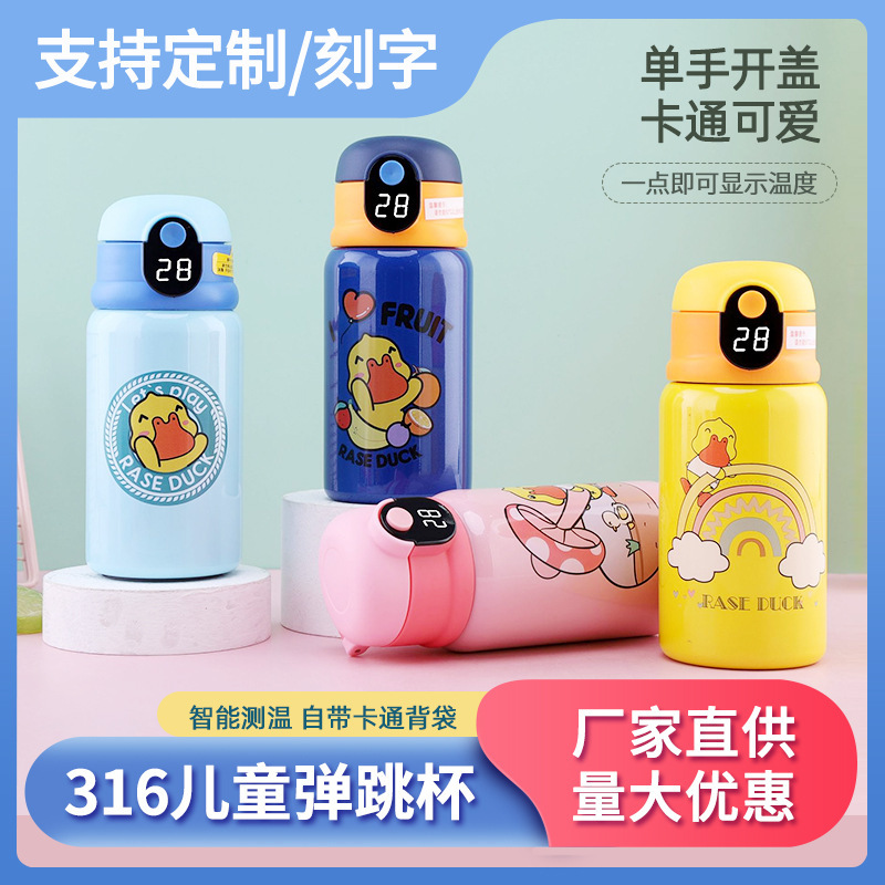 全ネット新製品児童保温カップステンレス316知能温度保温ポットがかわいいアニメカップを弾む