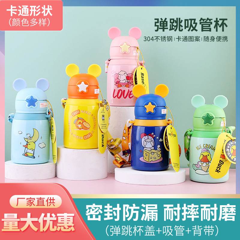 新しい316ステンレス保温カップ漫画星子供ポット屋外携帯バウンスストローカップギフトカップ