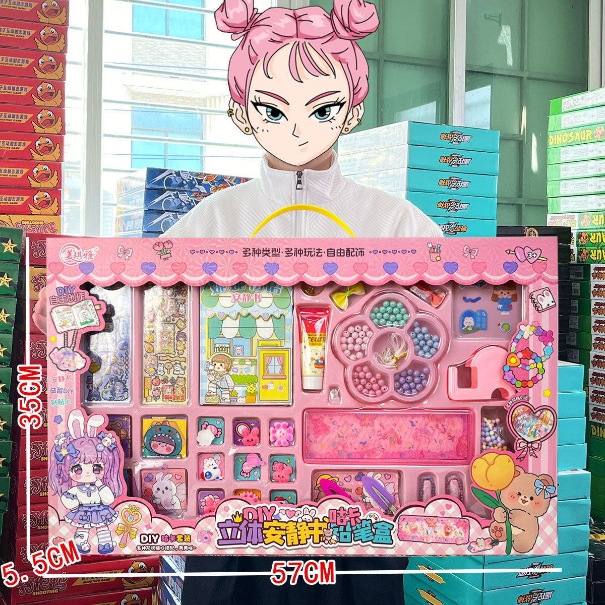 子供の女の子のおもちゃの学習用品の文房具DIY数珠の立体の静かな本の鉛筆の箱の機構の学生募集の贈り物