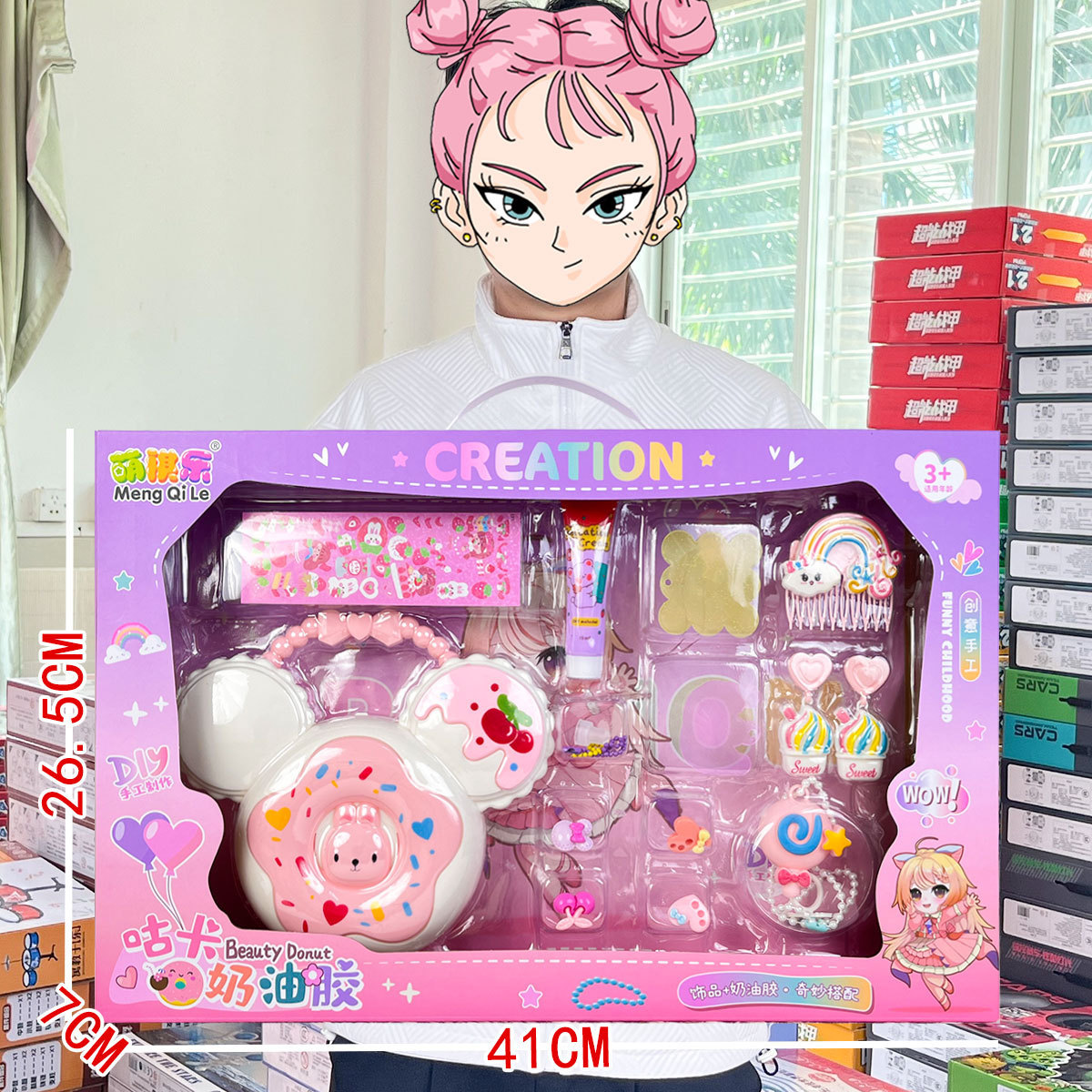 子供のおもちゃのクリームゴムの女の子のアクセサリーDIYのかわいいドーナツのハンドバッグのセットの機構の大きいプレゼントの箱