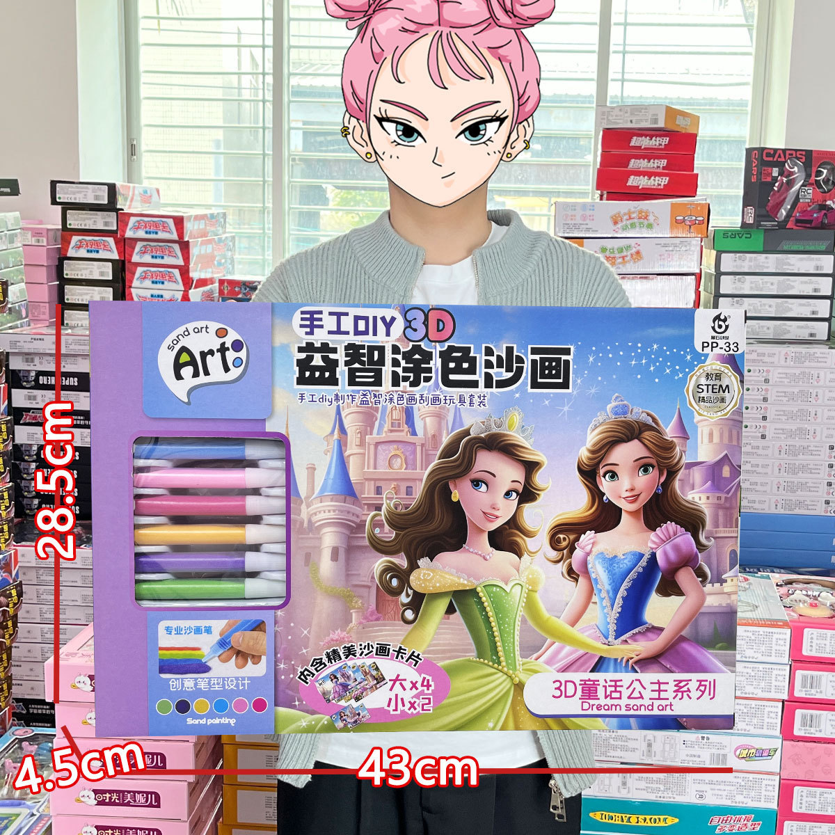 教育機関のプレゼントの女の子のおもちゃの益智彩沙画のおもちゃは色を塗るDIY王女の砂画のセットを塗って郵送します。