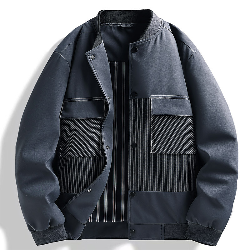 クロスボーダー 2025 春の新作ワークジャケットメンズフライトジャケット大きいサイズコートスタンドカラー無地カジュアルトップ